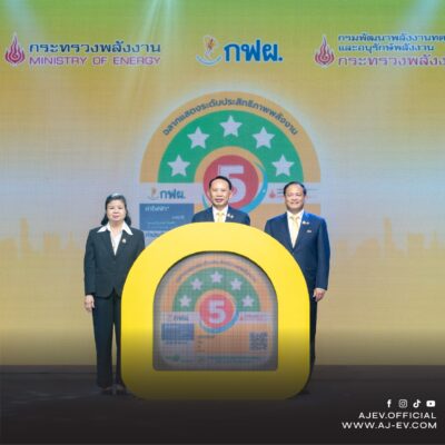 การเข้าร่วมในครั้งนี้ นับเป็นอีกหนึ่งความภาคภูมิใจของ AJ EV ที่เคยได้รับมอบโล่เกียรติยศจากโครงการฉลากประหยัดไฟฟ้าเบอร์ 5 ซึ่งสะท้อนถึงความมุ่งมั่นและความจริงจังในการดำเนินงานด้านการใช้พลังงานอย่างมีประสิทธิภาพและยั่งยืน พร้อมทั้งสนับสนุนนโยบายด้านพลังงานสะอาดของประเทศ เพื่อก้าวสู่อนาคตที่เป็นมิตรต่อสิ่งแวดล้อมอย่างแท้จริง